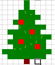 Not really a lot of shortcuts here…I did create a single green cell and then copied and pasted it to make all the others, and then did the same with the red, but that’s it. The garlands are just regular slashes and dashes, but I made the font yellow.